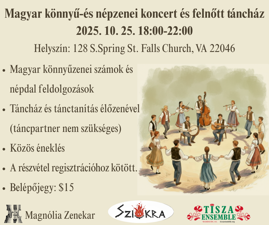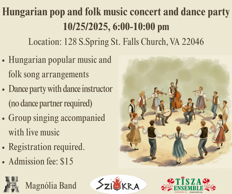 Tisza Ensemble was formed in 1982 by a group of dancers—from Maryland, Virginia, and Washington, D.C.—interested in the Hungarian táncház movement. Táncház—literally "dance house"—is a Hungarian folk dance social event. The táncház movement—a modern revival of Hungarian traditional dance and music—began in the early 1970s and forms an active part of Hungarian culture, both at home and abroad. Táncház draws on traditions from across the regions of the old Kingdom of Hungary, most notably Transylvania.